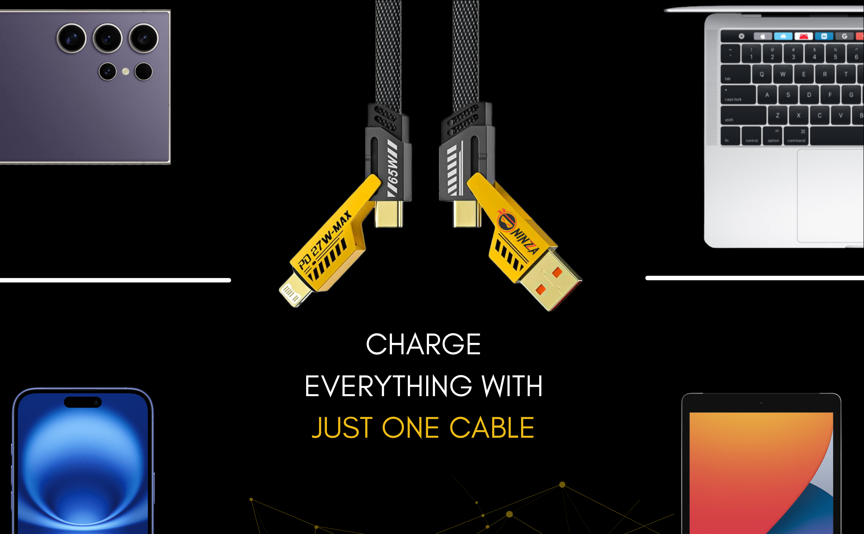 Ninzza QuadCharge 4-in-1 Rugged Fast-Charge Cable – 1.2 m